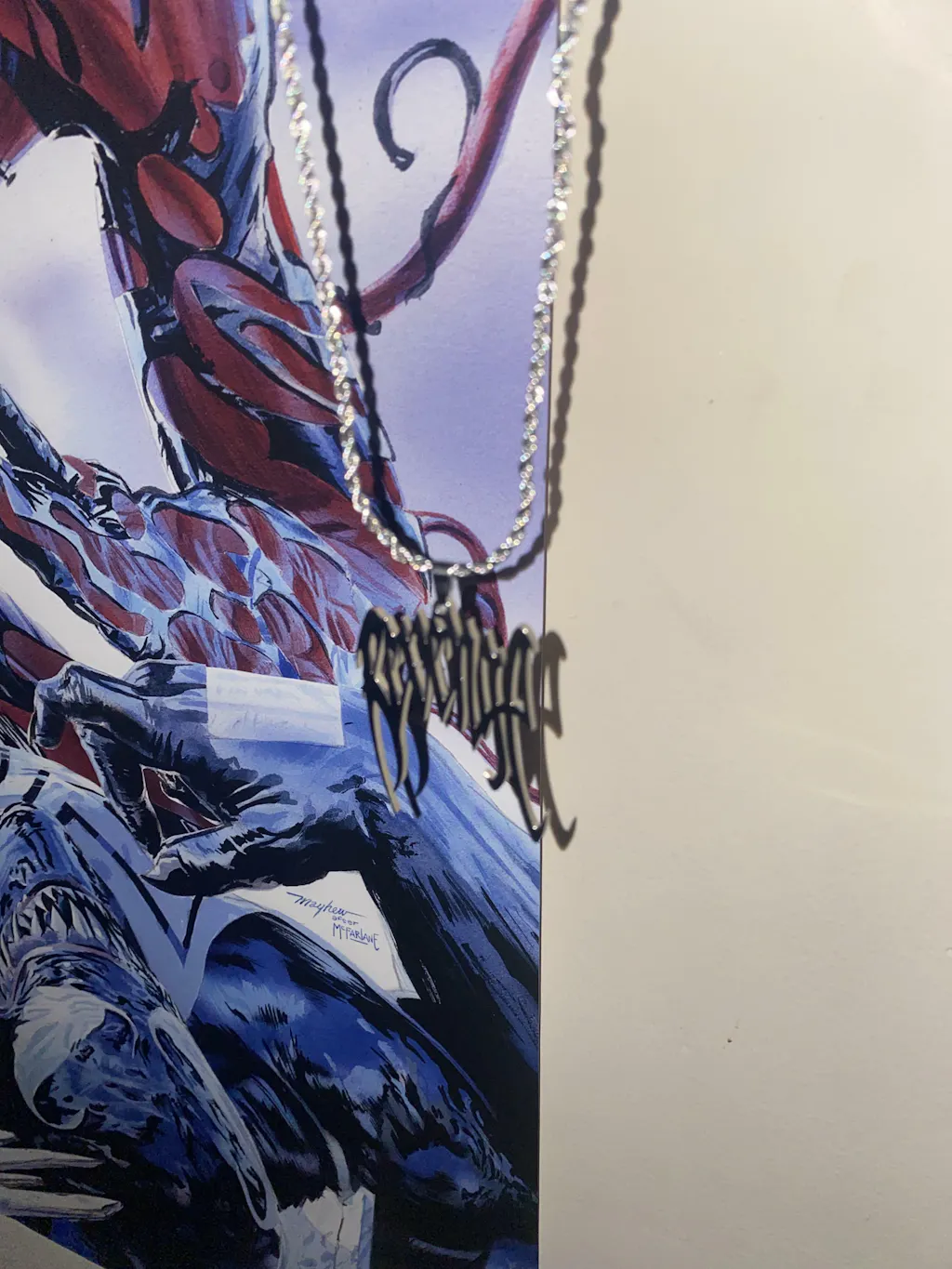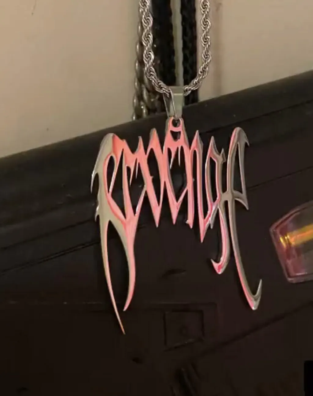 Revenge pendant is laser cut from solid hypoallergenic stainless steel. It is polished to a mirror quality achieving a shiny reflective surface. The necklace maintains a scratch free appearance and will never fade or tarnish! GUARANTEED.